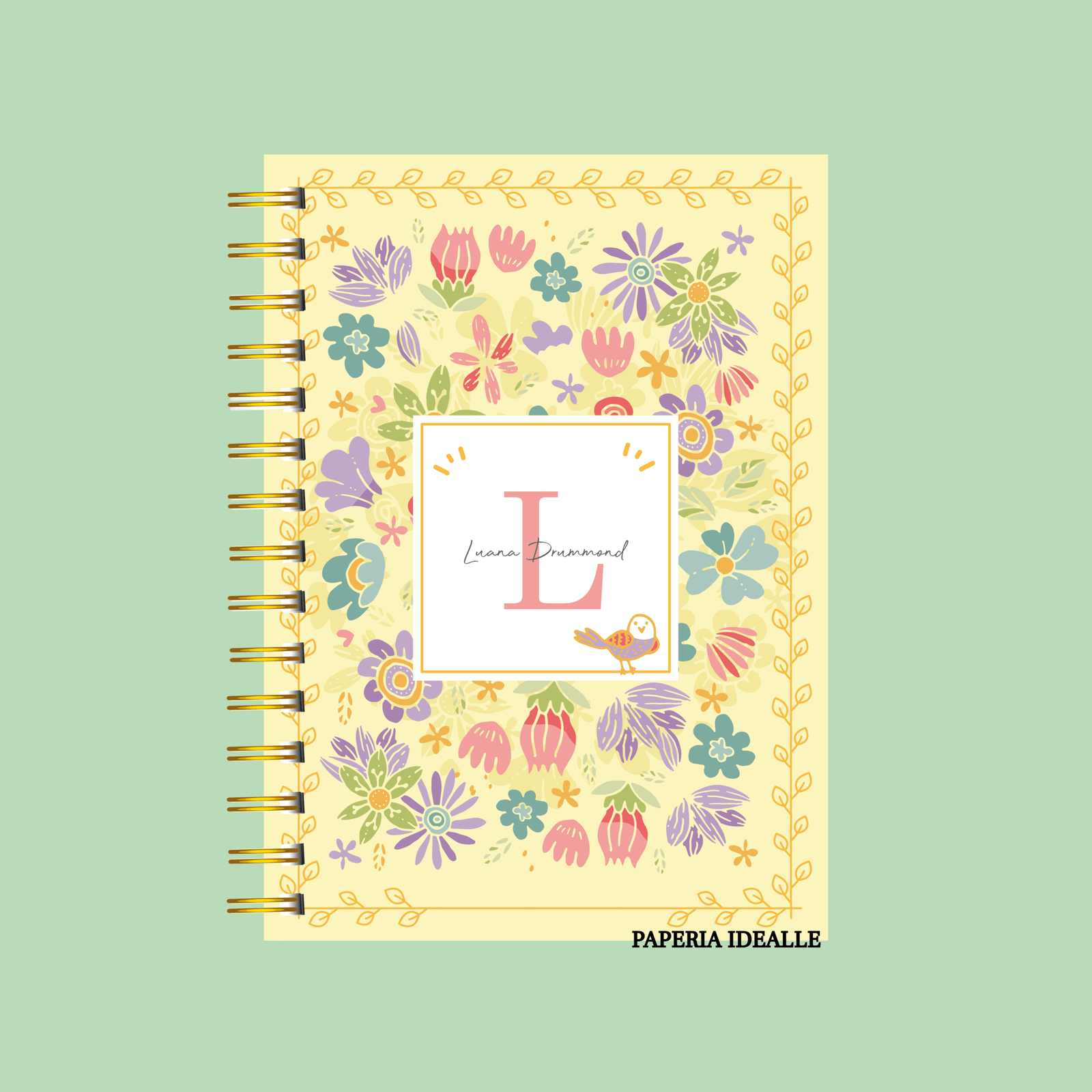 Agenda personalizada Delicada Floral Pássaro